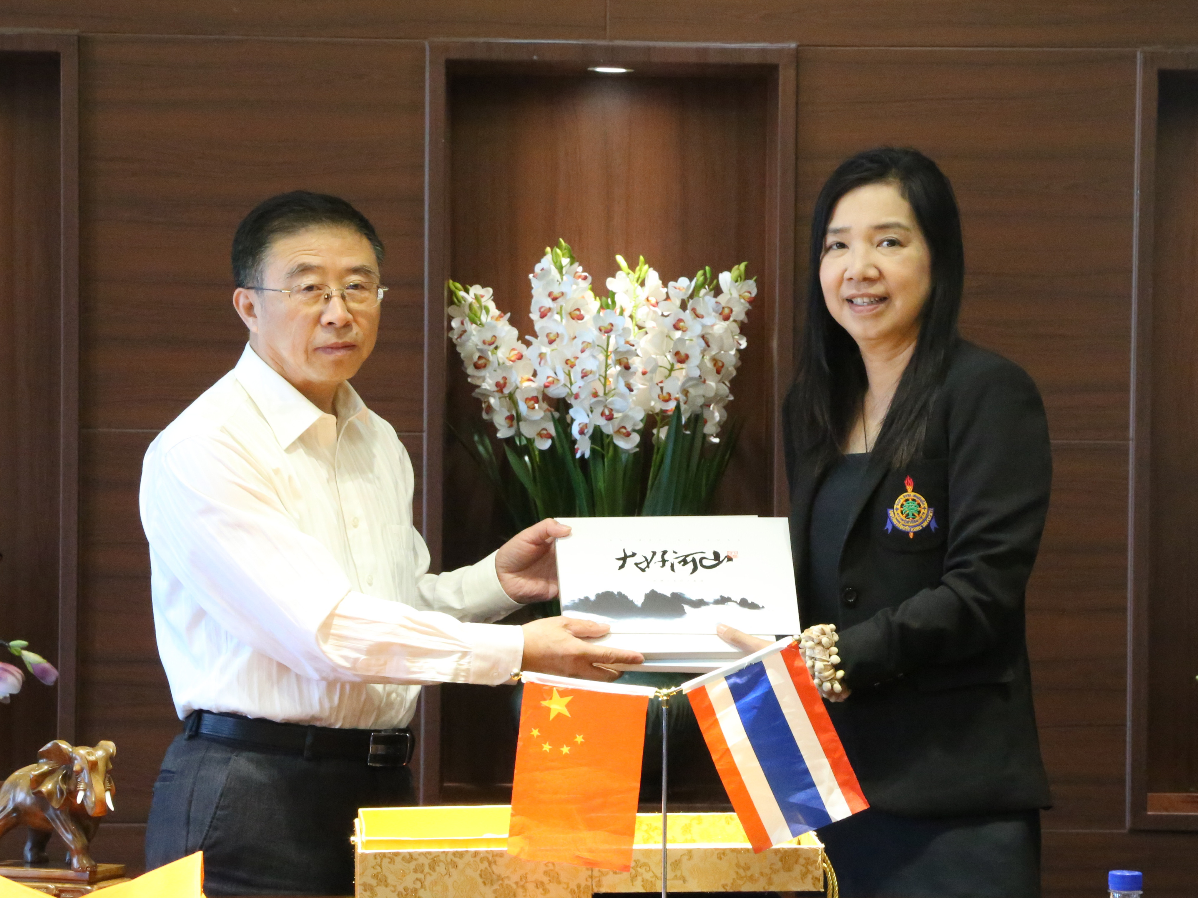 张力宏副院长对郑芸一行的来访表示欢迎,并介绍我校的基本情况及近年来取得的成果,指出在“一带一路”战略下,双方有坚实的合作基础和广泛地合作领域。郑芸对我校的热情接待表示感谢,介绍了泰国格乐大学办学的基本情况和特色项目,期待与我校开展合作,实现共赢,双方就国际合作项目就行了深入的沟通和交流。随后,郑芸一行参观我校新校区。