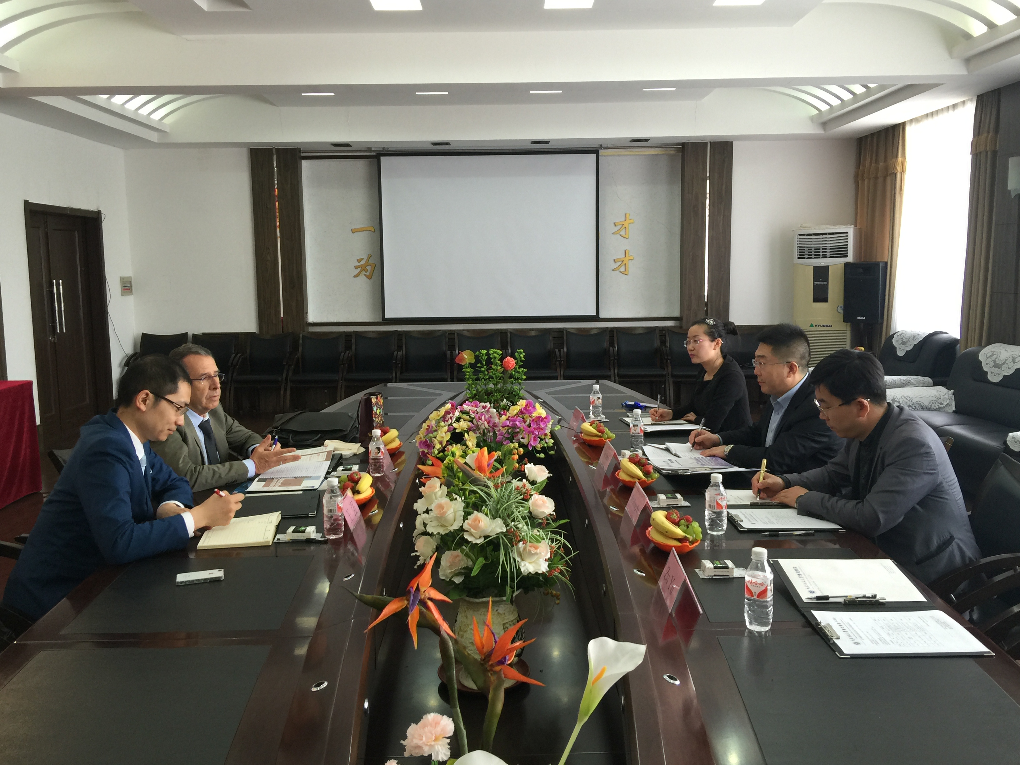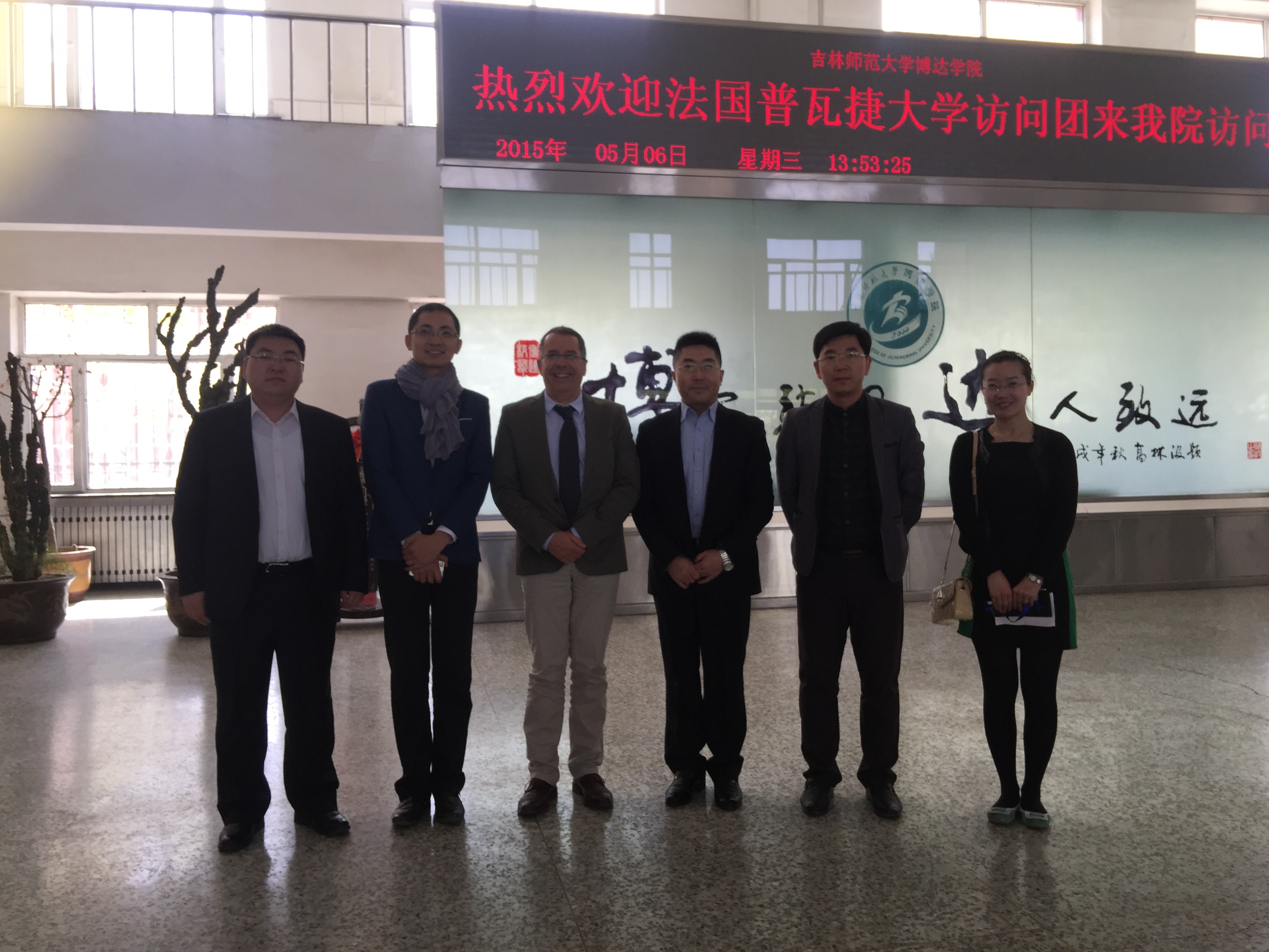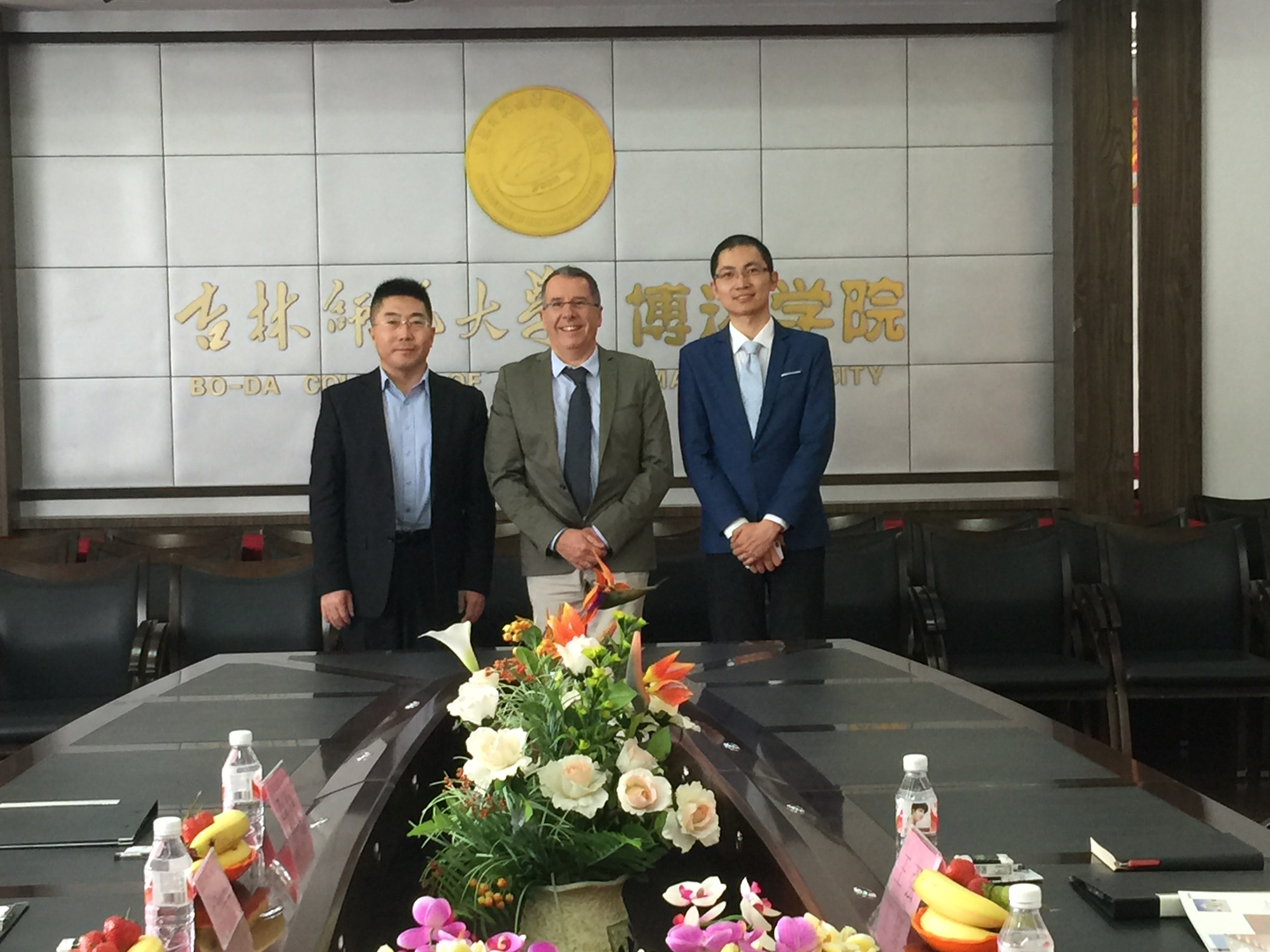 5月 6日,法国普瓦捷大学代表Christian Gaujac院长及法国驻沈阳领事馆推广与留学指导部负责人王强先生来我院访问。外事处处长崔建立及外事处全体成员出席会议并陪同来访客人参观校园。会议中,崔建立处长对我院办学情况进行简要介绍,Christian Gaujac院长对博达学院作为一所年轻大学取得的成绩表示赞赏。双方就法语专业学生赴法开展短期语言培训、本科“2+2”、硕士“4+1+1”或“4+1+2”、教师和学生互换等教育合作项目达成共识。