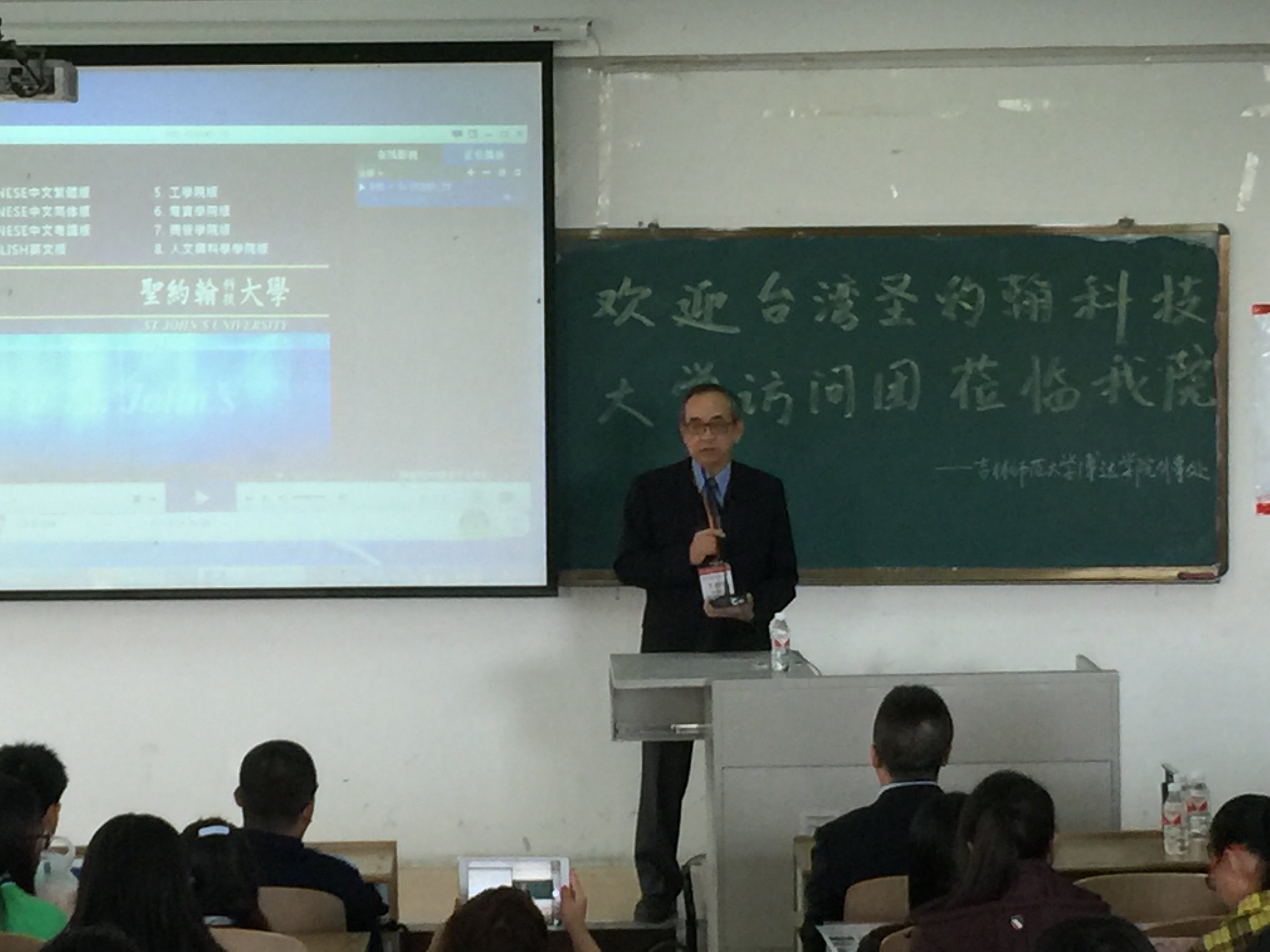 10月10日,台湾圣约翰科技大学两岸学术交流中心李栋梁主任、中华两岸教育文化交流学会周希炯秘书长、中华两岸教育文化交流学会项目专员丁小峰来我院进行访问并举行赴圣约翰科技大学游学宣讲,宣讲会由外事处崔建立处长主持。在宣讲会上,来自台湾的李栋梁主任向同学们介绍了圣约翰科技大学的校园、师资和办学特色等情况,随后就同学们踊跃的提问进行了解答。