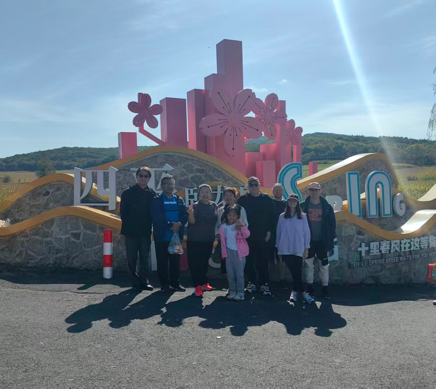 活动当日,秋阳正好,微风和煦。外籍教师们在办公室工作人员的陪同下,驱车前往位于四平市铁东区石岭镇的卧龙泉景区。这里林木葱郁、泉水潺潺,兼具秀美的自然生态与深厚的乡村人文底蕴,是感受四平本地风貌的绝佳去处。抵达后,一场别开生面的 "山水徒步话情谊" 活动拉开序幕,教师们沿着规划路线漫步,沿途欣赏层叠绿树、潺潺泉流与错落有致的乡村景致,在新鲜空气中舒展身心。徒步过程中,大家相互搀扶、谈笑风生,时而驻足观赏山间野趣,时而交流教学心得与生活感悟,脚步声与欢笑声交织在一起,构成了一幅和谐温馨的同行画卷。