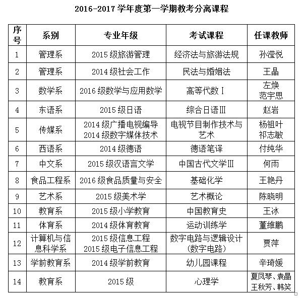 4. 各系需将有关教考分离的课程及要求向老师和学生传达。