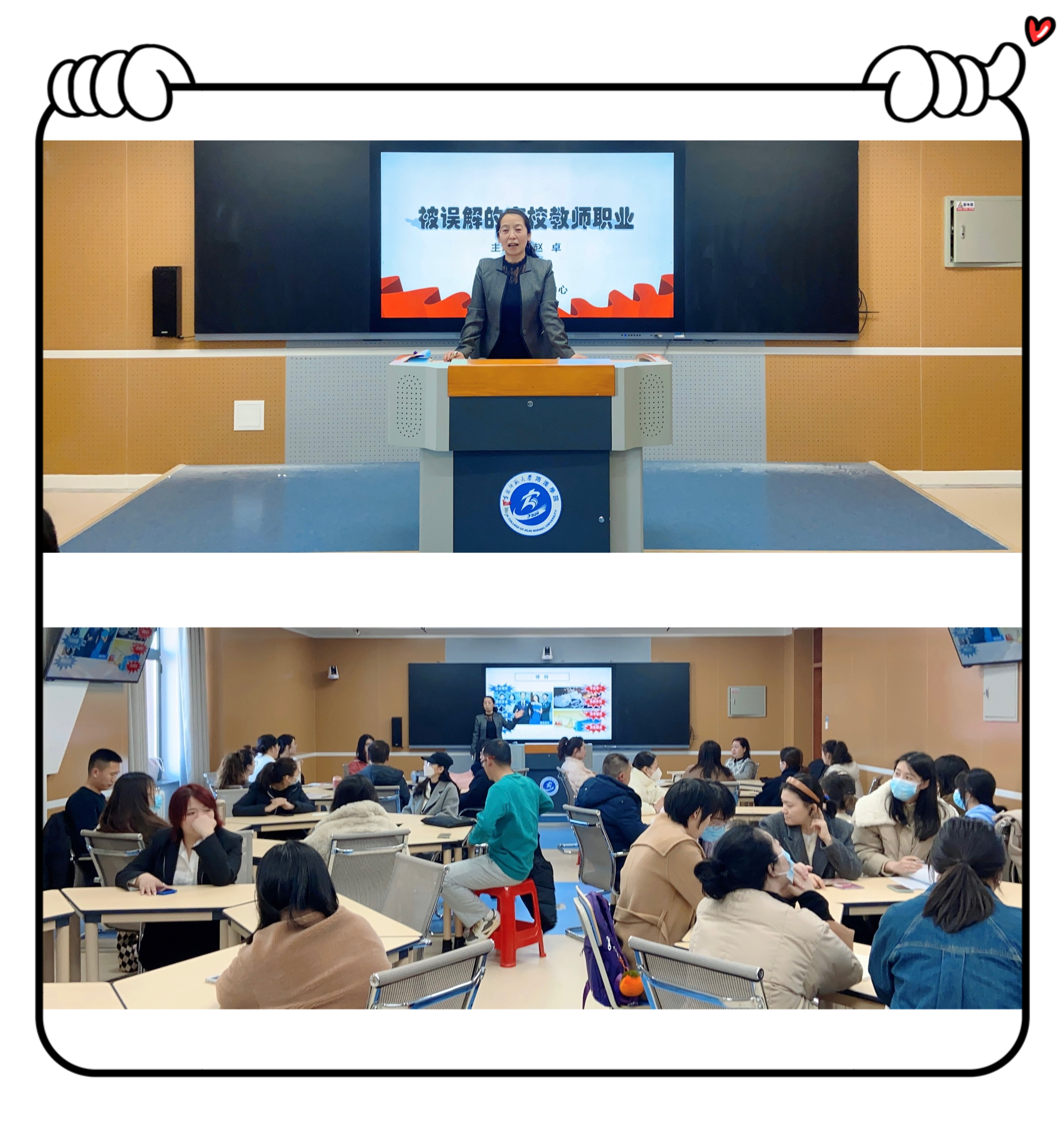 第二项——教务处处长赵卓进行开班仪式讲话。赵处长从“理想职业”入手,深度剖析其双面性,以此引入高校教师的职业特点。赵处长列举出一系列高校教师在教学过程中存在的误区与雷区,并围绕教师教学内容、教学方式、教学评价、课堂气氛以及师生关系五个方面进行深入分析,为新入职教师“排雷”。最后,赵处长强调高校教师应厚植师者情怀,使得生活与职业互利互惠、职业与发展互帮互助、发展与情怀互通互融。