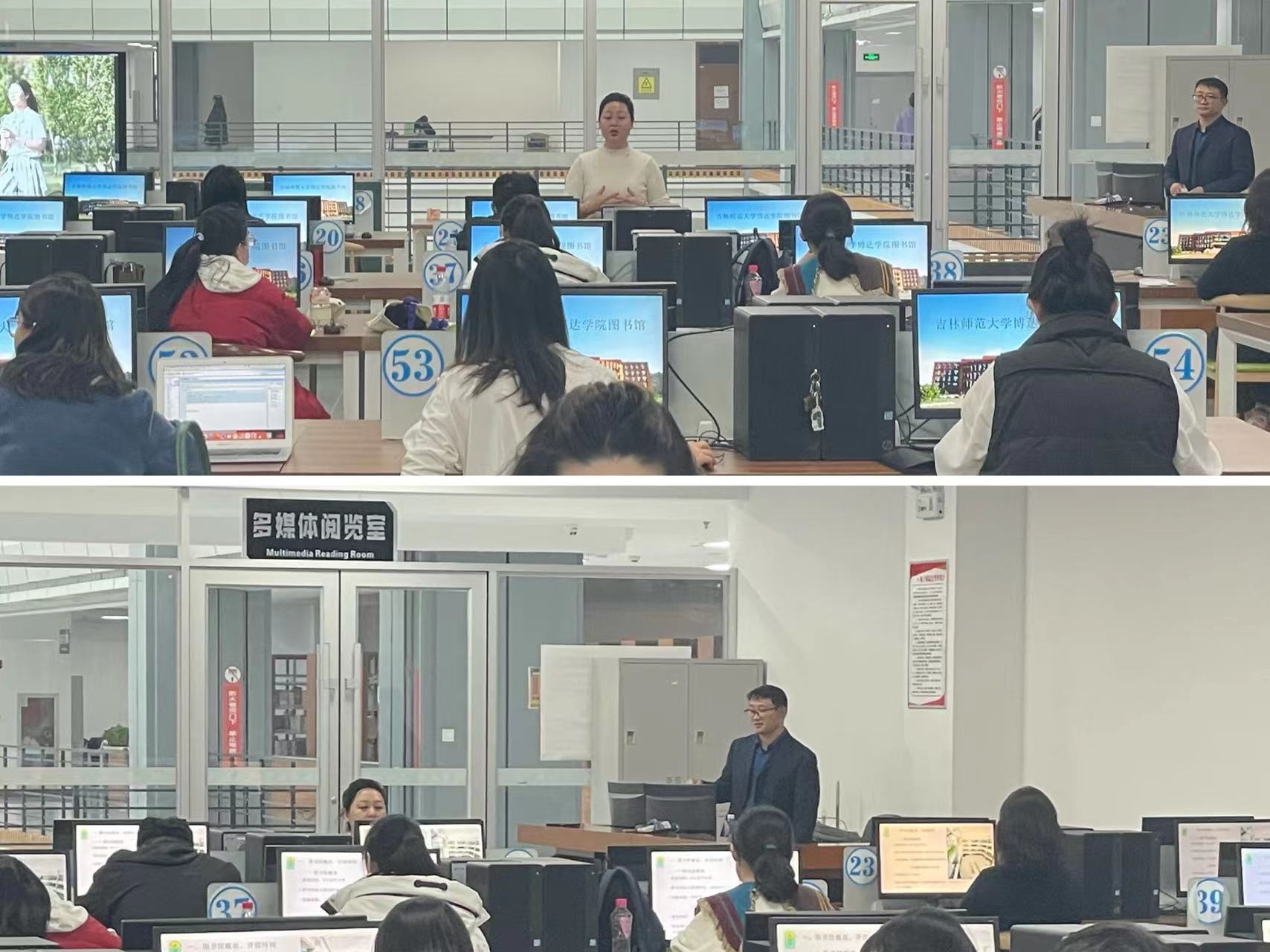 首先,吕馆长从图书馆总体概况入手,说明开馆时间、馆藏册数、阅览座位等基本情况。其次,对楼层分布及其他服务进行介绍,包括二楼、三楼、四楼、五楼及多媒体阅览室。最后,为大家推荐读秀学术搜索和汇雅电子书,可一站式搜索馆藏纸质图书、电子图书、随书光盘等学术资源,不论是学习、研究、写论文、做课题、拓展阅读,都能为老师们提供最全面、准确的学术资料。