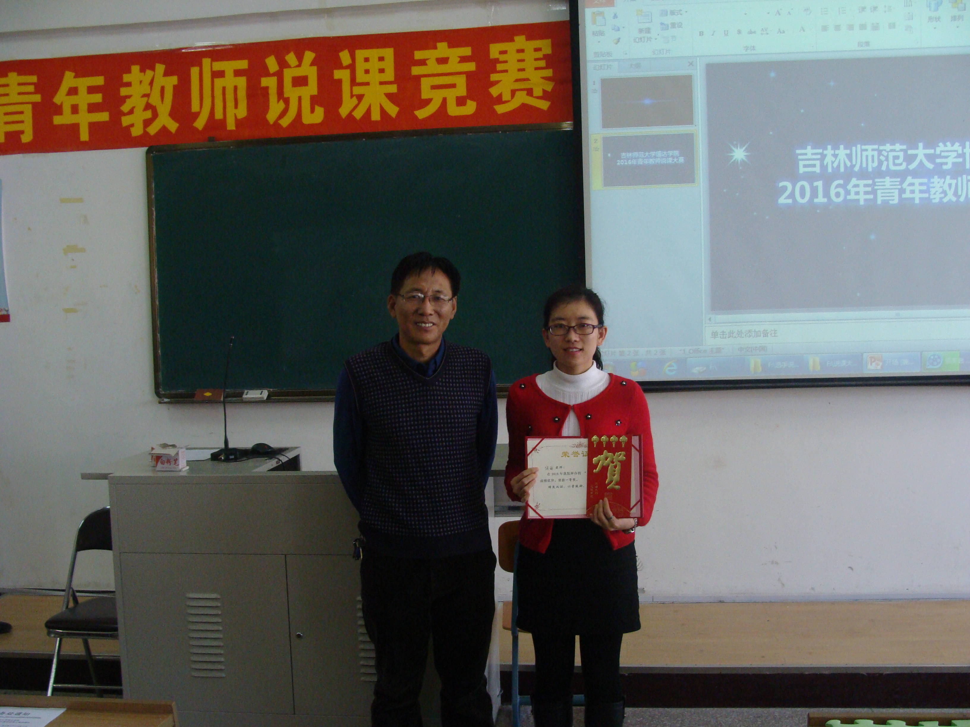王鹏、陆媛媛老师为孙海龙(左二)、马建(左三)老师颁发二等奖