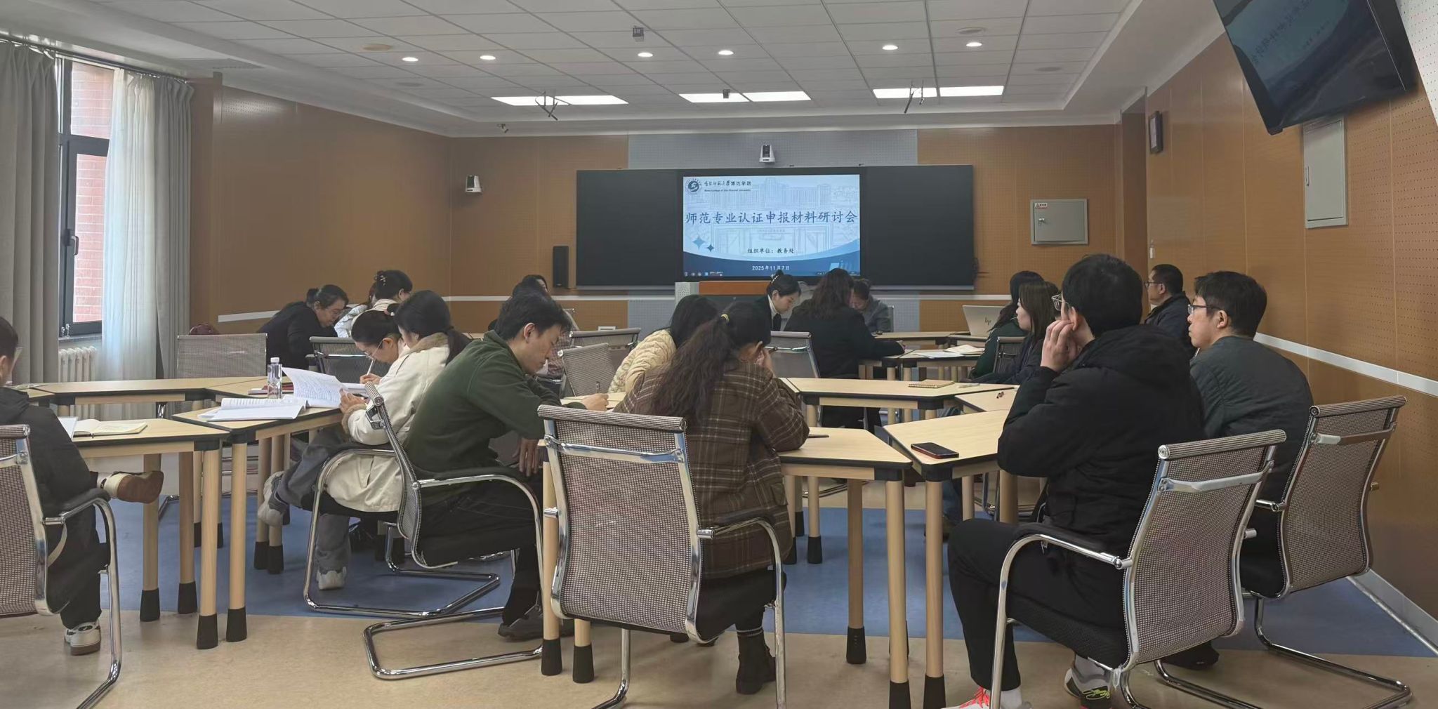 为推动师范专业认证工作顺利进行,师范专业认证办公室于11月7日上午在综1413智慧教室召开师范专业认证申报材料研讨会。本次研讨会由教务处处长赵亚芬主持,各师范专业负责人、教学院长、认证办公室成员及教务处全体成员参加会议,围绕认证材料提交情况,总结各专业材料不足之处,统一进行问题汇总并就目前材料撰写情况展开深入交流。