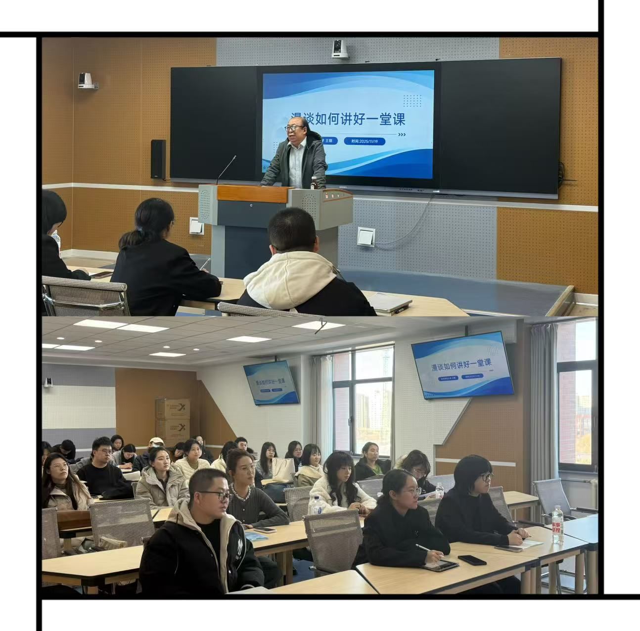 此次培训内容兼具理论深度与实践指导性,不仅系统讲授课堂教学关键要点,更掌握了善用现代技术、优化PPT设计等实用技能。王教授提出应把培训所学融入日常教学,从了解学生需求出发,精心打磨每一堂课,以饱满的热情与科学的方法投身教育教学工作,为学校人才培养质量提升注入新活力。