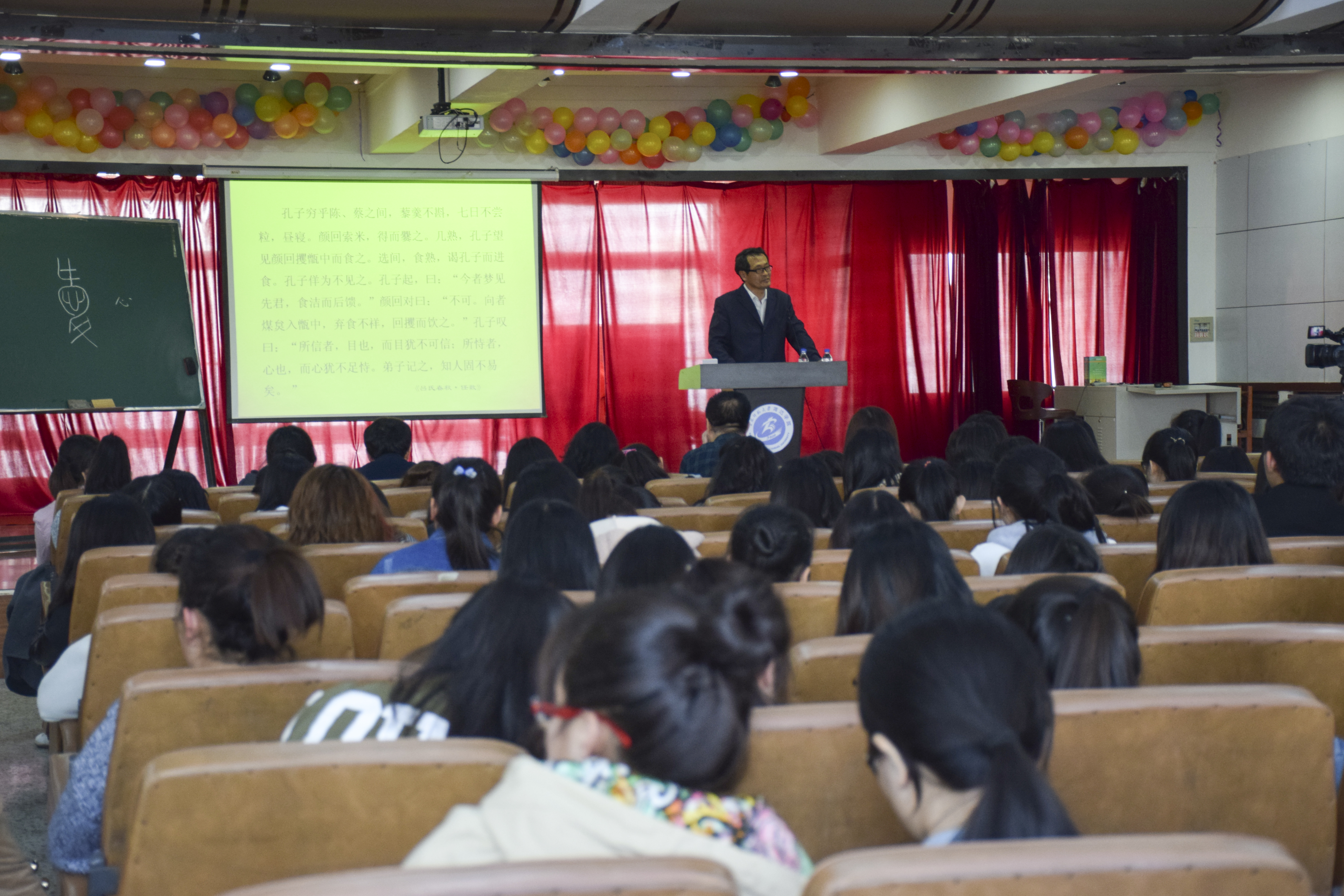 3月30日下午13:30,“百部经典”系列讲座第四场开讲,我院教授委员会主任委员、中文系主任侯云龙教授在二教六报作专题讲座,题为“读《论语》 做君子”。我院中文系师生400余人听取了该讲座。