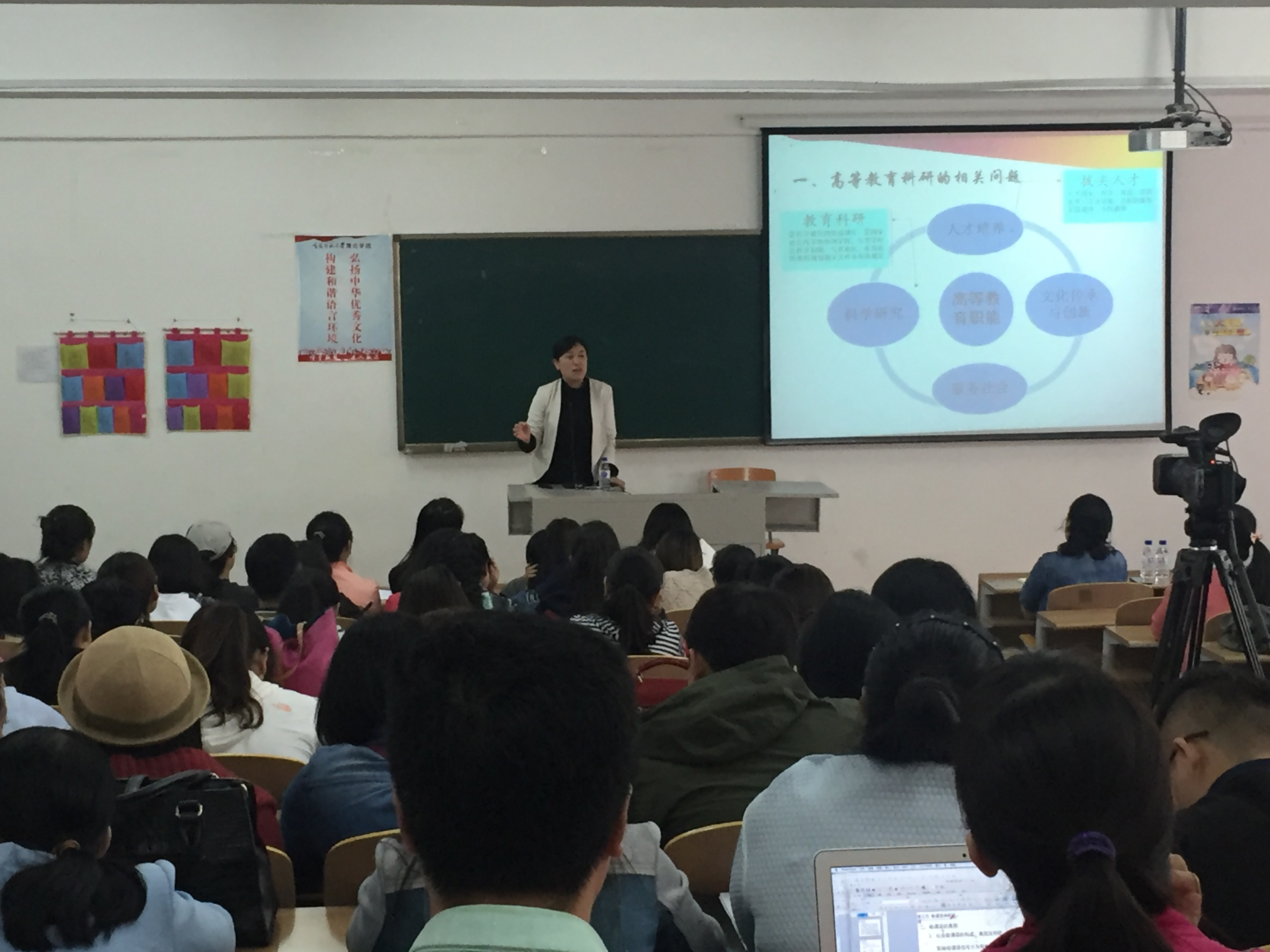 5月25日下午14:00,吉林省教育科学院杜亚丽副院长莅临我院,并在3321教室作专题讲座:如何开展教育科研。我院青年教师180余人听取了该讲座。
