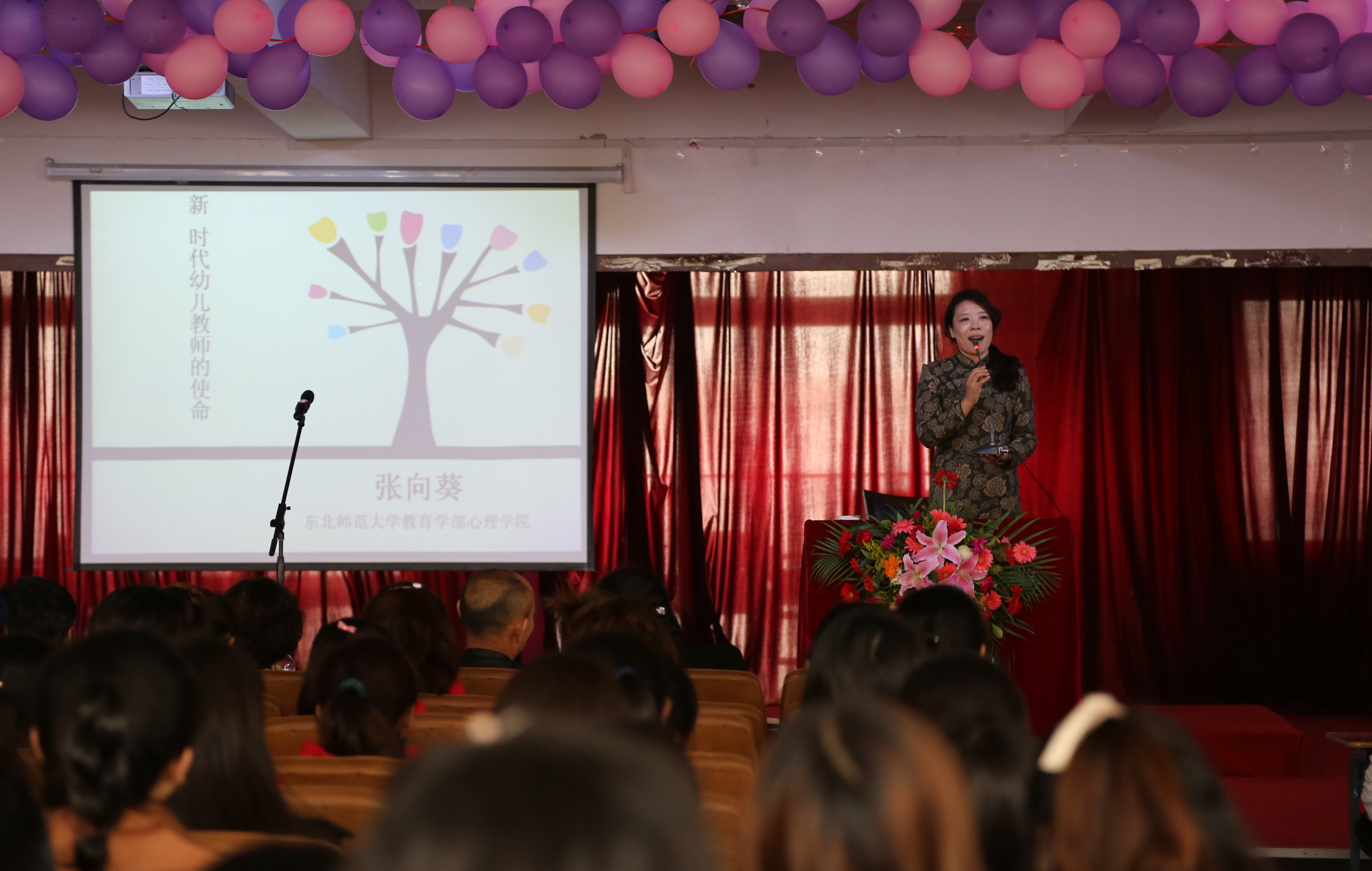 4月9日下午,教育部幼儿园园长培训中心副主任、东北师范大学儿童发展研究中心主任,东北师范大学教育学部心理学院博士生导师张向葵教授莅临我院,在二教六楼报告厅作了专题讲座,题为“新时代幼儿教师的使命”。学前教育系师生及博达第一幼儿园、实验幼儿园全体教师约400人听取了该讲座,讲座由我院科研处处长侯海荣主持。