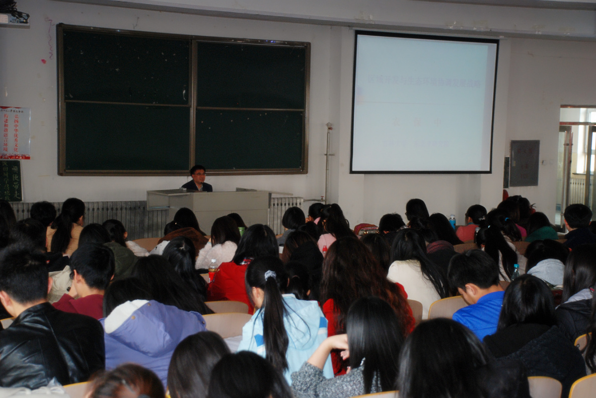 10月29日下午,教育部重点研究基地吉林大学东北亚研究中心教授,区域经济学博士生导师,中共吉林省委决策咨询委员会委员,吉林省政府决策咨询委员会委员衣保中莅临我院,在3601教室作了专题讲座,题为“区域开发与生态环境协调发展战略”。我院师生约700人听取了该讲座,讲座由科研处处长侯海荣主持。