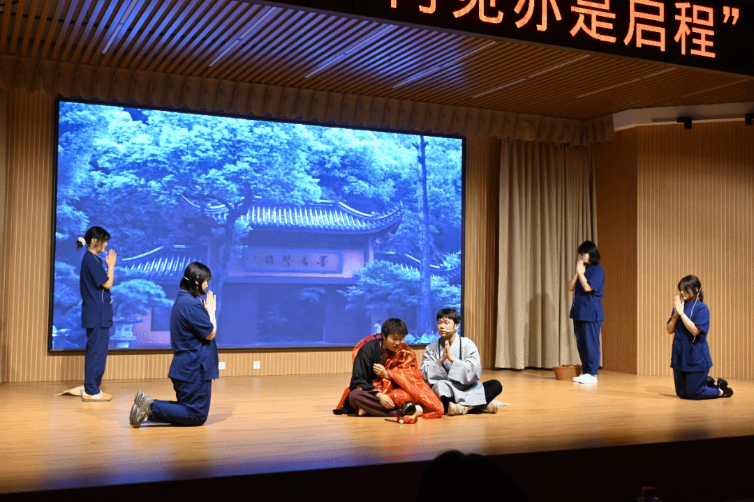 老僧与少年的禅意对话,佛珠迸裂、袈裟卷月……戏剧社用古风美学演绎了一场关于成长与抉择的寓言。山门铜钉轻颤,少年踏碎禅机,走向山外新传说——恰如毕业生们挣脱桎梏,拥抱未知。