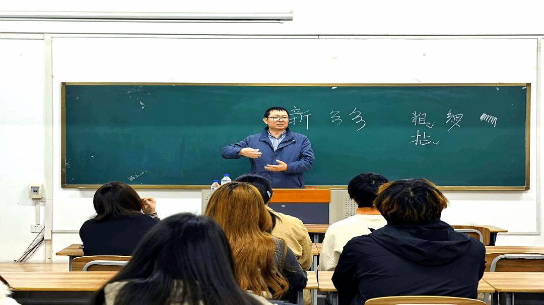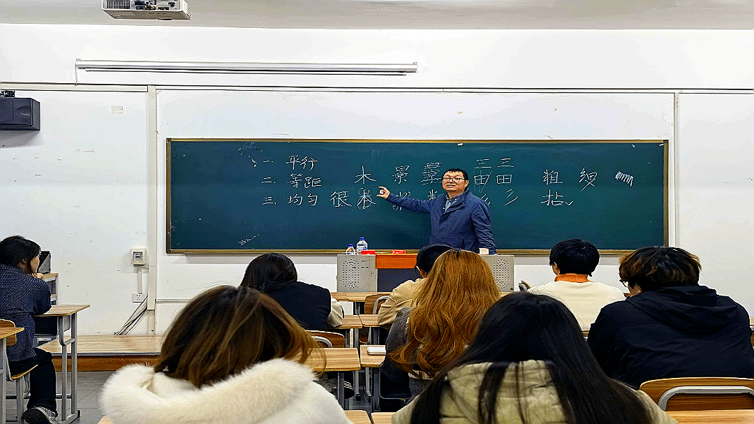为深入推进新学期学风建设工作,全面落实学风建设月,夯实学生板书书写基础,发挥学生骨干引领作用,文学院教学院长王大刚老师为25级小先生开展专项教学指导行动,为新学期学风建设注入青春动能。