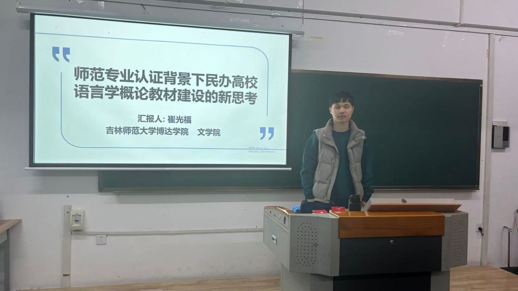 11月19日下午14:00,文学院在综合楼1509教室举办了专题教研活动。此次活动由赵丹老师和崔光福老师分别进行专题汇报,汇报主题分别为《教育数字化背景下民办高校中年教师数字素养提升的影响因素及创新路径研究》和《师范专业认证背景下民办高校语言学概论教材建设的新思考》。